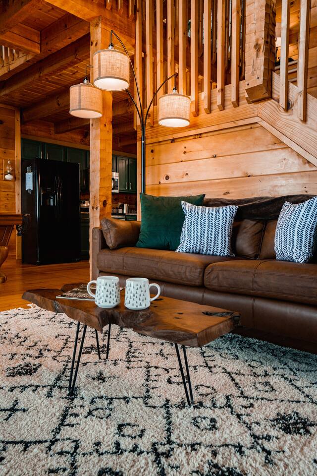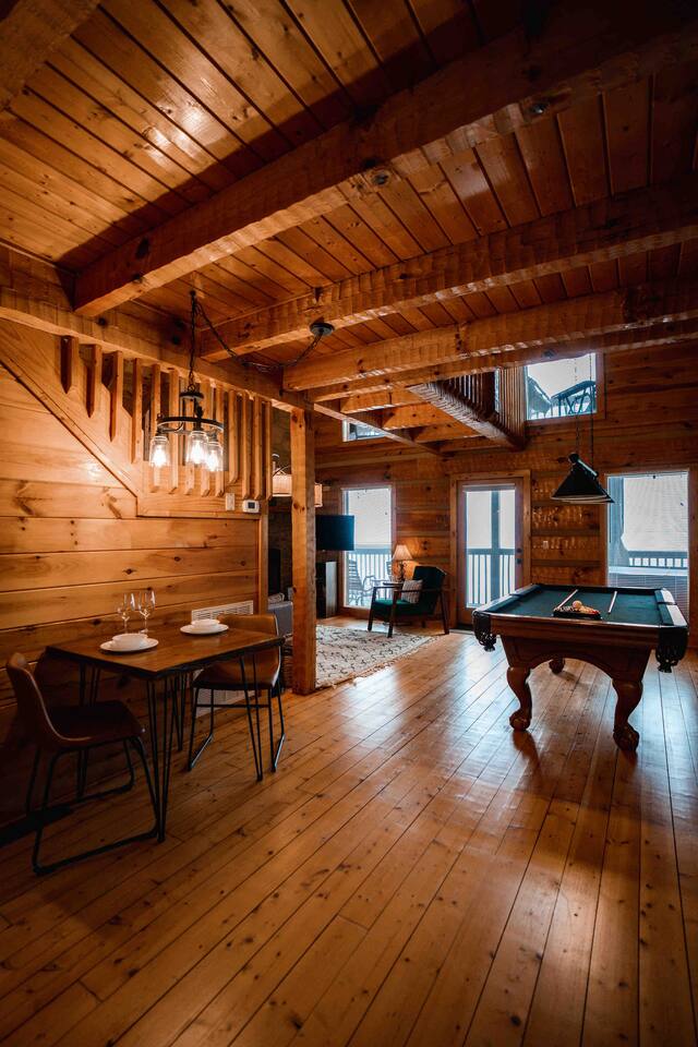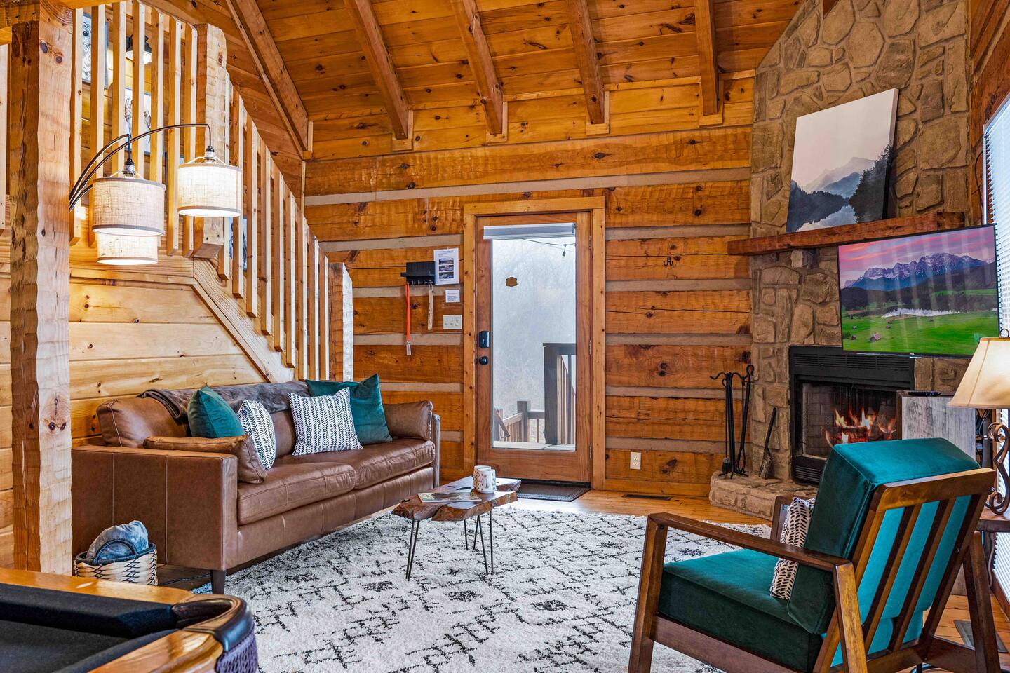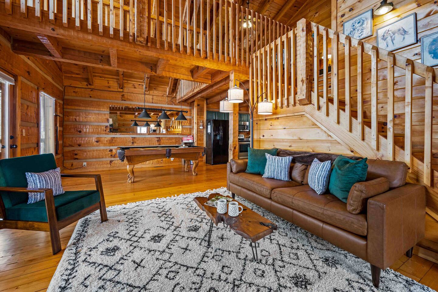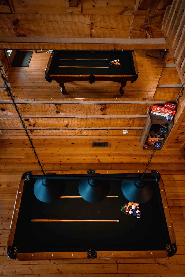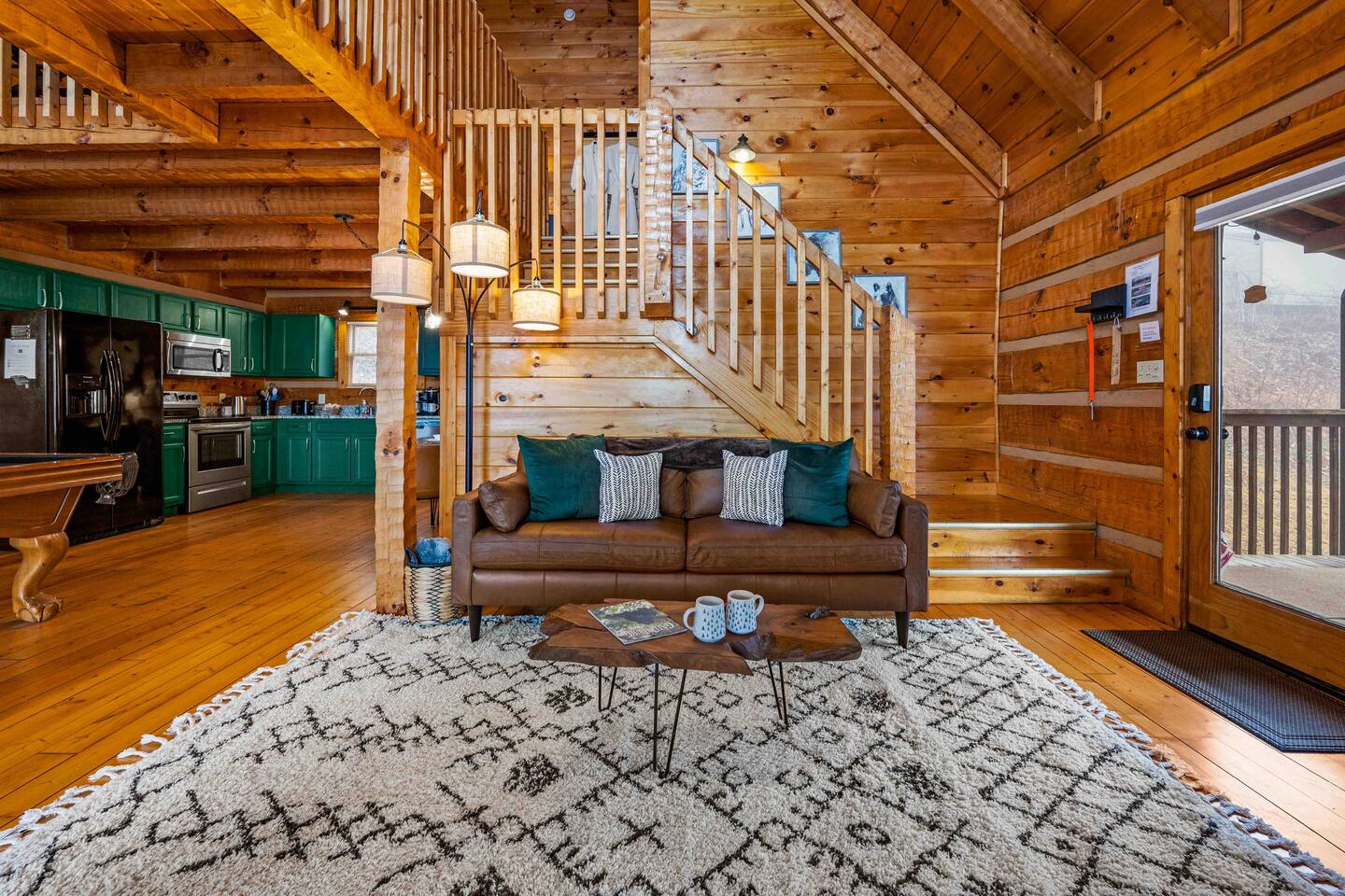 You will be awed by vaulted great room with the wonderful view, corner wood burning fireplace, a great interior and peaceful atmosphere. The rough hewn beams, log and chinking add to the total Smoky Mountains country aura of this log cabin. You will want to stop, sit a while, and just bask in the beauty and warmth of your surroundings, and look out the window at the spectacular view! The living room has a smart tv and Blu-ray DVD provided. Adjacent to the living room is a full size pool table ready for you to test your skill and challenge your partner. At night, you can stargaze from the hammock on the upper deck or experience true mountain romance as you and your companion relax in the hot tub while admiring the beautiful mountains of East Tennessee.