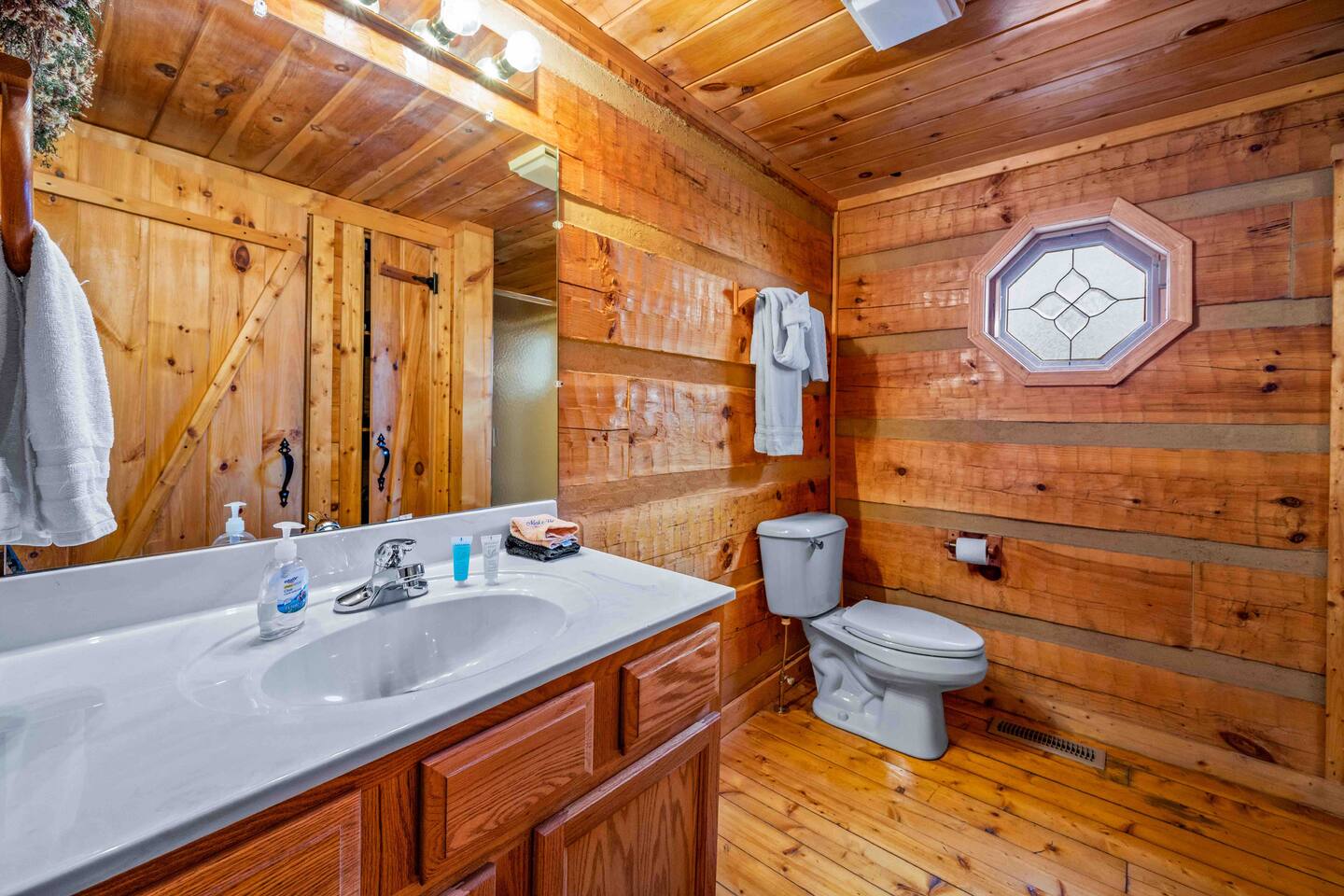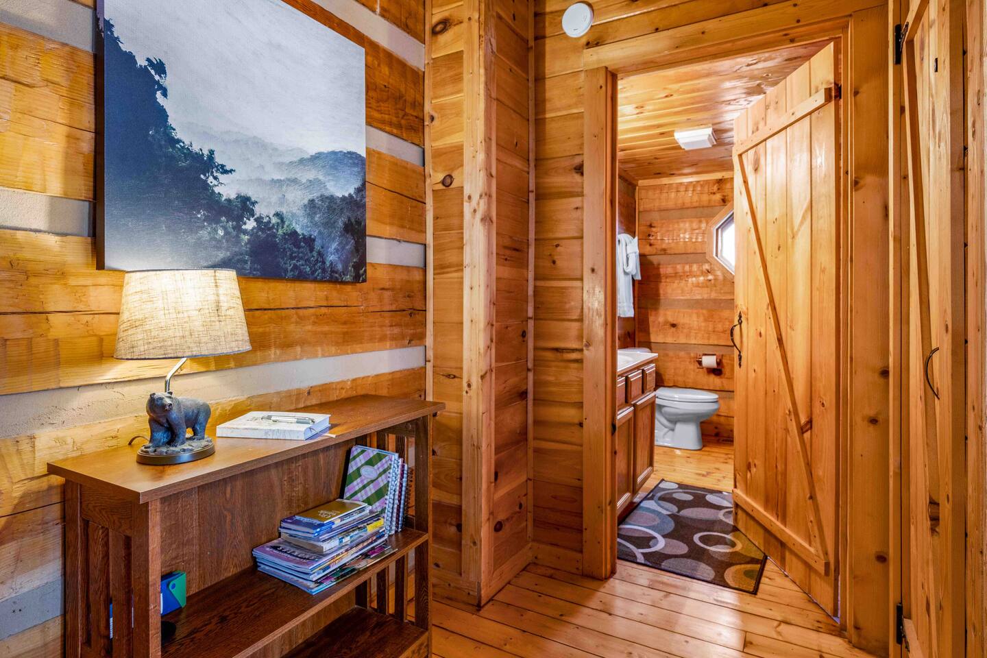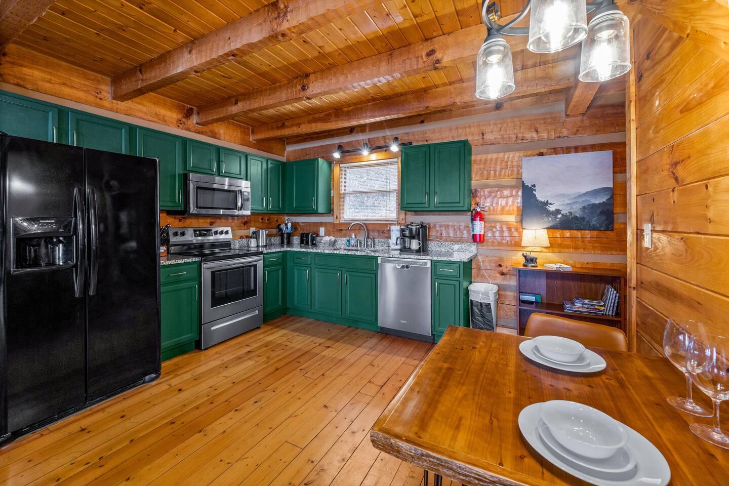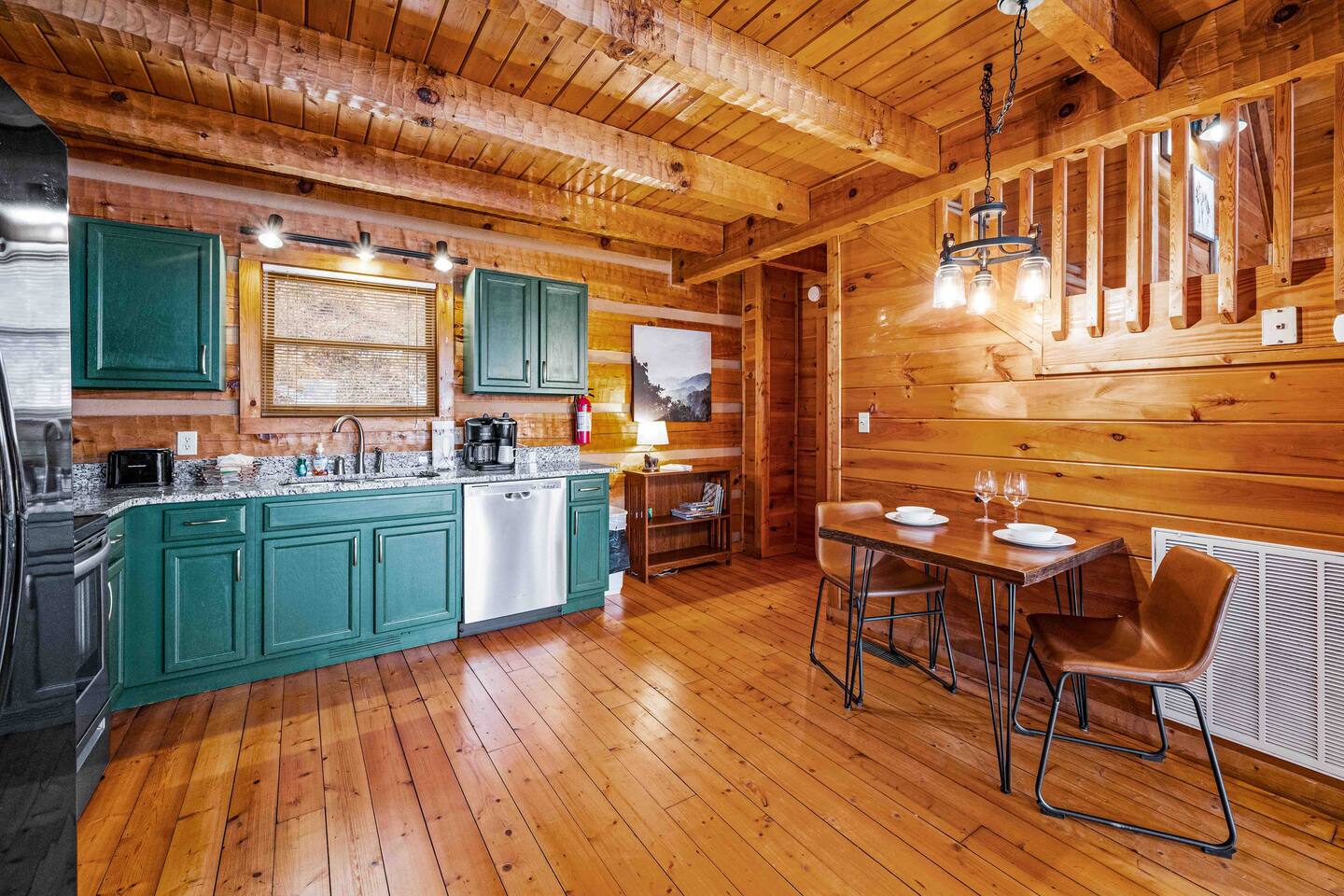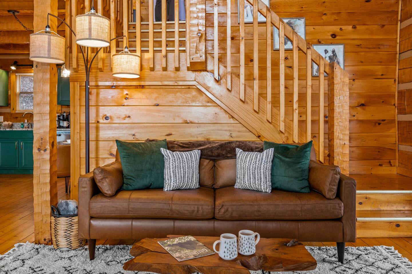 You will be awed by vaulted great room with the wonderful view, corner wood burning fireplace, a great interior and peaceful atmosphere. The rough hewn beams, log and chinking add to the total Smoky Mountains country aura of this log cabin. You will want to stop, sit a while, and just bask in the beauty and warmth of your surroundings, and look out the window at the spectacular view! The living room has a smart tv and Blu-ray DVD provided. Adjacent to the living room is a full size pool table ready for you to test your skill and challenge your partner. At night, you can stargaze from the hammock on the upper deck or experience true mountain romance as you and your companion relax in the hot tub while admiring the beautiful mountains of East Tennessee.